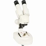 This compact, portable design is battery-powered and offers an inclined binocular head and all-glass optics stereo / dissecting microscope. Eyepieces: 2 - 10x eyepieces. Eyepiece tubes: 2. Binocular view with 45ยบ incline: Variable adjustment for student comfort. Frame: High impact plastic. Illumination: LED cool lighting source with very long life (12,000+ hours), on/off button. Power: 2 - AA Batteries (300 hours of operation). Objectives: 2x. Stage plate: 2-sided - black and white. Focus: One knob focus for both fine and coarse 1 year limited warranty.